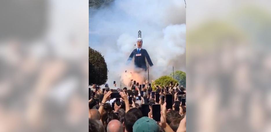 Momento de la quema del muñeco de Benjamín Netanyahu durante la tradicional ‘Quema de Judas’ en El Burgo. La imagen ha sido utilizada por Israel para su queja formal. (Foto: Captura de vídeo / @IsraelMFA)